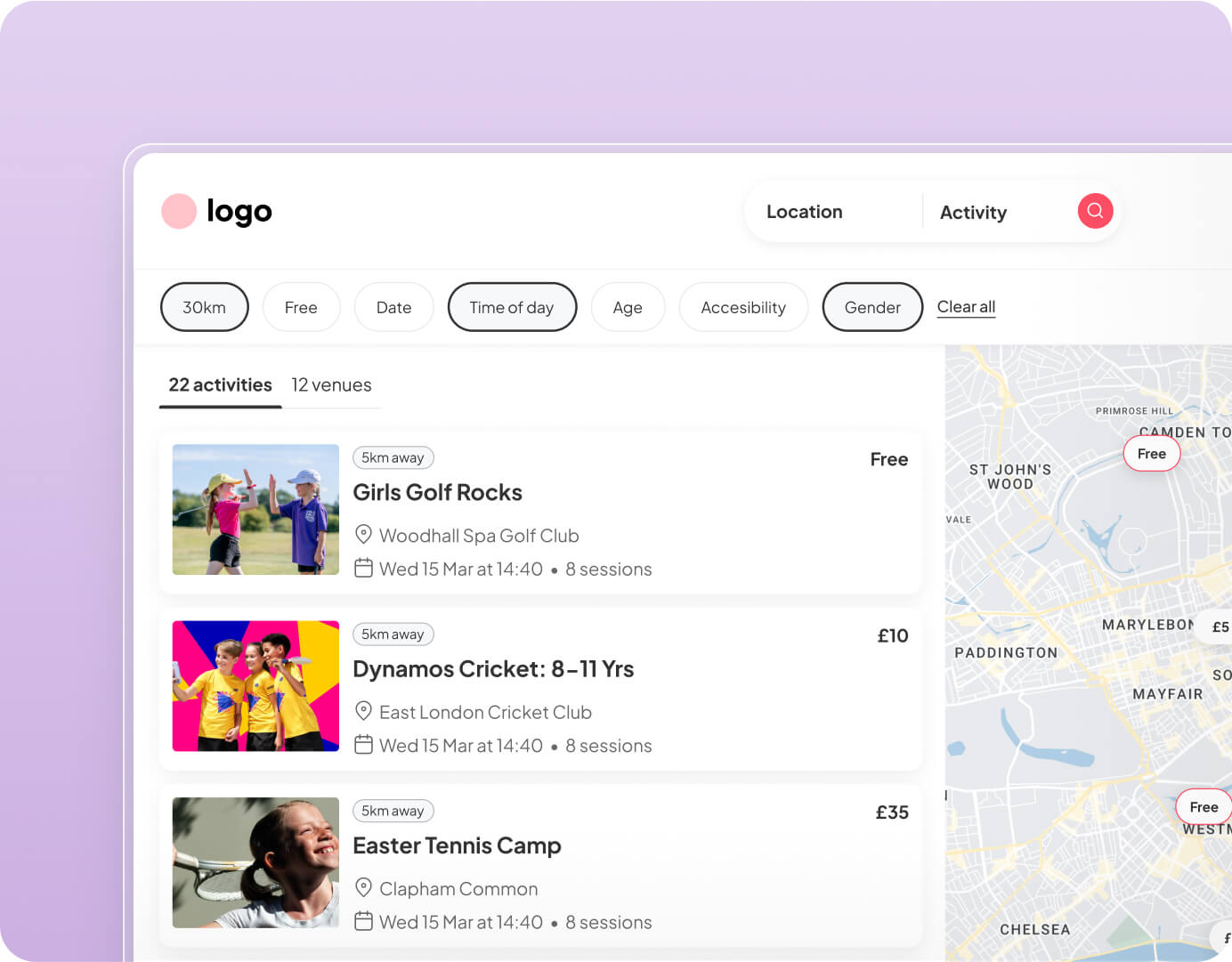 Help people find the right activity for them with filters, categories and more