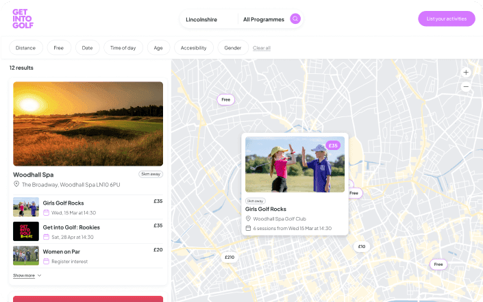 Showcase live, up to date opportunities to be active from multiple providers